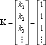 | K | vector of residuals. Each component is the difference between the observation, ki, and the equation evaluated for the initial guess, xi0 |