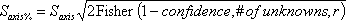 where the confidence is a number from 0 to 1, with 1 being complete confidence, and r is the number of degrees of freedom. The Fisher distribution is determined from the equation
