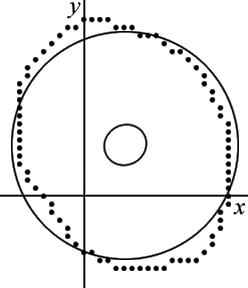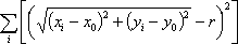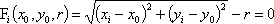 Ideally, it is desirable to minimize the square of the distance between the points defining the circle and the circle. That is, minimize