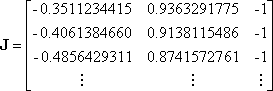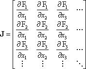 | J | the Jacobian matrix. This is the partial differentials of each equation with respect to each unknown. Sometimes written