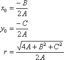 where (x0,y0) is the center of the circle and r is the radius of the circle.