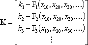 | K | vector of residuals. Each component is the difference between the observation, ki, and the equation evaluated for the initial guess, xi0 |