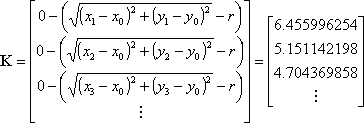 Furthermore, let the vector K be the vector of the residuals. A residual is the difference between the observation and the equation calculated using the initial values. That is