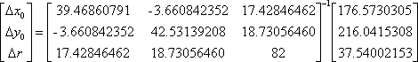It is desirable to solve for the adjustment values, DX. This is the vector of adjustments for the unknowns
