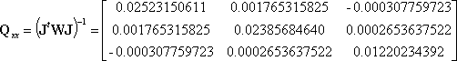 | Qxx | the covariance matrix. Also called the variance-covariance matrix. Qxx=N-1 |
