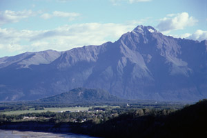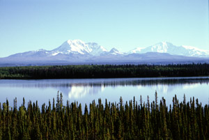 I set out toward the ranger station, stopping for gas on the way. $1.62 a gallon - but what else would I do. Good views of Mount Drum, the more distant but larger Mount Blackburn, and the Tazlina River. I stop at the Park's visitor information center and talk with a friendly young woman. I get topographic maps of Dixie Pass. The trip is probably just a three day - this is good, since I'll be able to see all the other sights, but isn't quite as aggressive as I might have liked. I'm undecided whether to start my hike today or to play tourist in McCarthy and start it tomorrow.