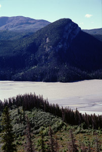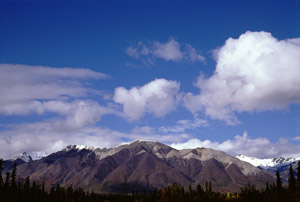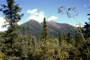 I have been stopping frequently to take photographs. Along the Chitina Road are excellent vistas of the Tonsina River (with braided channel and eroded banks) and of distant mountains (Blackburn, Drum, and others). At last I reach Chitina, end of the paved road. I check in at the local ranger station hoping they will know the weather forecast. There is none - no forecast, that is. The female ranger is polite but disinclined to converse. I set out on the McCarthy Road.