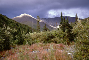 Vegetation was the lushest I have seen in Alaska. Thick willow and alder. Some birch. Much spruce. Sedges and grasses are common with low marshes and lichen-covered hillsides. Lots of different mosses and flowers.